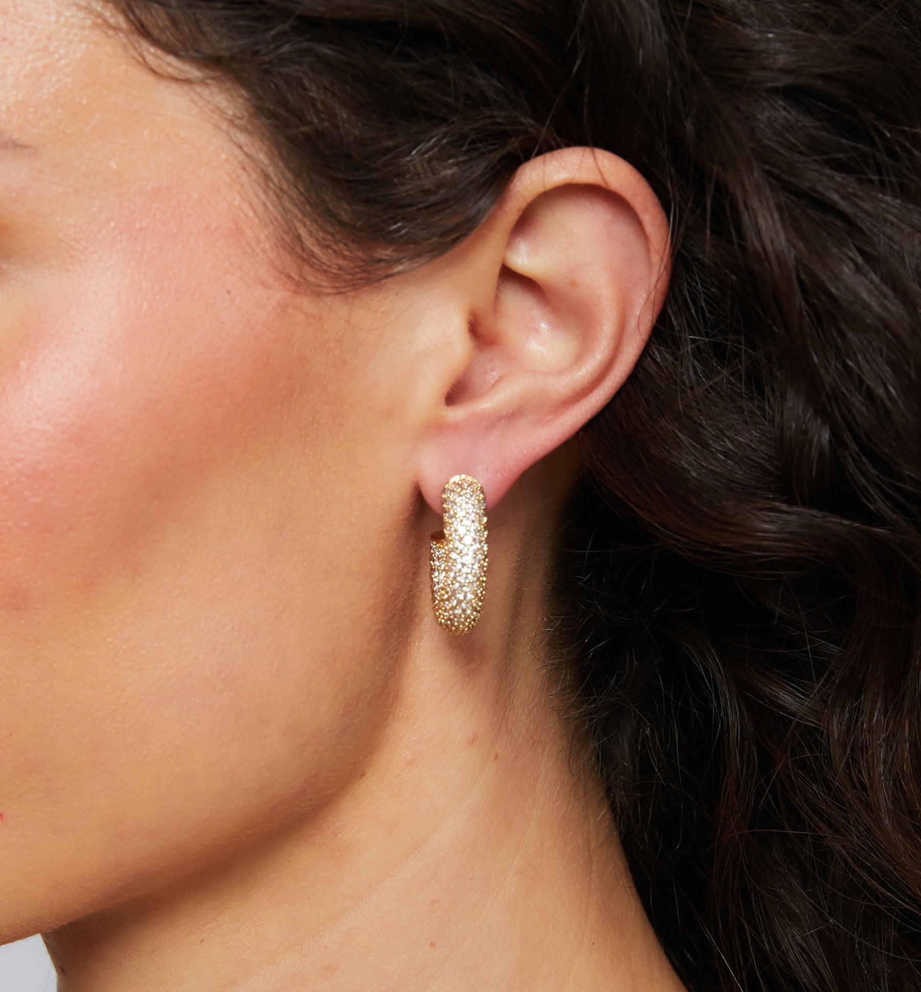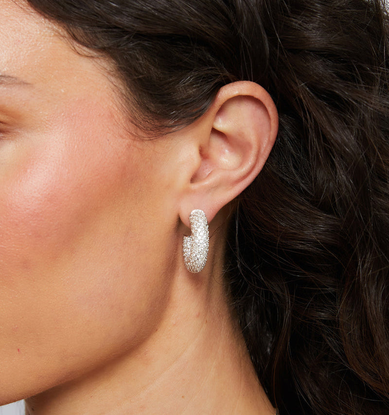 By Miranda Frye. A sparkling, pave hoop that’s effortlessly chic and timeless. Every wardrobe should have a hoop that brings a little extra sparkle and fun!